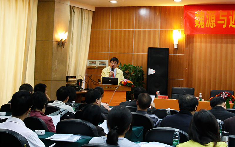 图为黄建军教授在“魏源与近代文学研讨会”暨“2011年湖南省古代文学年会”上就其学术论文《“诗比兴笺”稿本与刻本之比较》进行陈述发言
