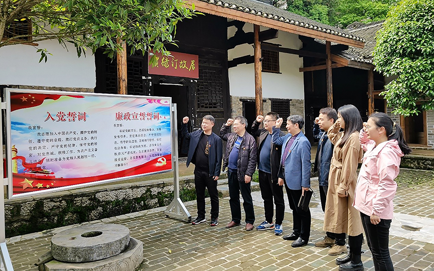 2021年4月17日,尹进田博士(左一)带领党支部成员参观红色教育基地,开展党史学习教育